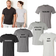 Heather colored shirts are blends of cotton and polyester. Other colors are usually 100% combed and ring-spun cotton. Triblend t-shirts are a mix of combed/ring-spun cotton, polyester and rayon. The color chart is for reference only and is not meant for final color matching. Shades may vary due to changes in manufacturing process and resolution of your computer screen.