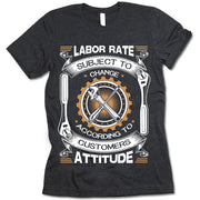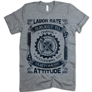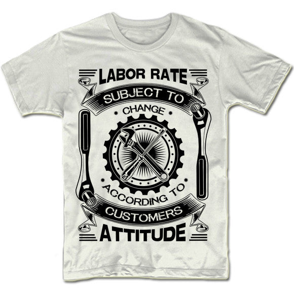 The listing is for one short-sleeve UNISEX crewneck t-shirt with “Labor Rate Subject To Change” design. Please refer to the size chart below (laying flat measurements in inches) if you want to measure it against one of the shirts you currently wear.